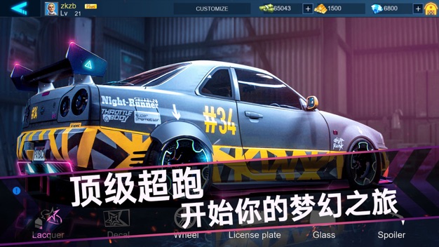 -【自由改装】我们不但为你准备了精美的整车涂装,你还可以自定义车身、轮胎、尾翼,强大的贴花功能让你自主设计趁心的极品炫车!