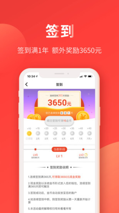 ···签到,签到满1年,额外奖励3650元!