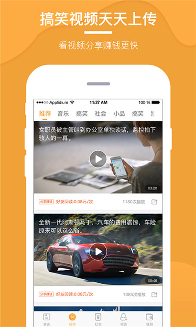 《优看点》是集有趣、有料、有品内容于一体的资讯聚合平台,不仅聚合互联网上有用、有趣、有益的看点、头条文章&好看视频,更有抖音、火山、小咖秀等精彩短视频,为用户推荐好玩、有看点的内容。优看点以平台、用户共赢的运营方式致力于打造全新的阅读模式,用户在在阅读有价值文章的同时,参与广告收益分成,实现看资讯、看视频能赚钱共赢模式。