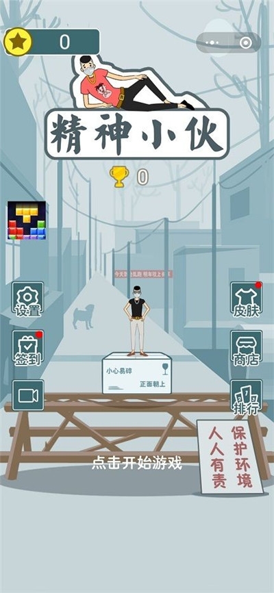 《精神小伙》是一款非常魔性的休闲闯关类手游,游戏中玩家们要控制一个精神小伙,在各种障碍面前想办法越过去,你可以在跳跃的同时舒展你的身姿,来获取极高的分数,一展你的精气神。快乐的音乐背景洗脑,简易的操作步骤,点一下操纵你的精神小伙持续的弹跳,圆满落在易破的小箱子上,把握机会跳起降落,看一下你可以跳得多高,精神小伙不知道疲倦,随时都能玩个不断,赶快加入进行挑战吧。
