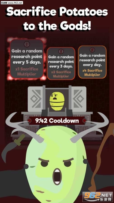 3、土豆遵循非常严格的信念,会向每天需要土豆牺牲的神灵祈祷,选择您的马铃薯神以获得您最喜欢的奖金。