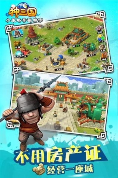 《神三国》是一款以三国时代为背景下的策略模拟经营游戏,讲述的在玩家在三国中打造一城之主的经历:经营三国城池,模拟三国生活,招募三国谋士智囊团,排兵布阵赢取知名战役的胜利。