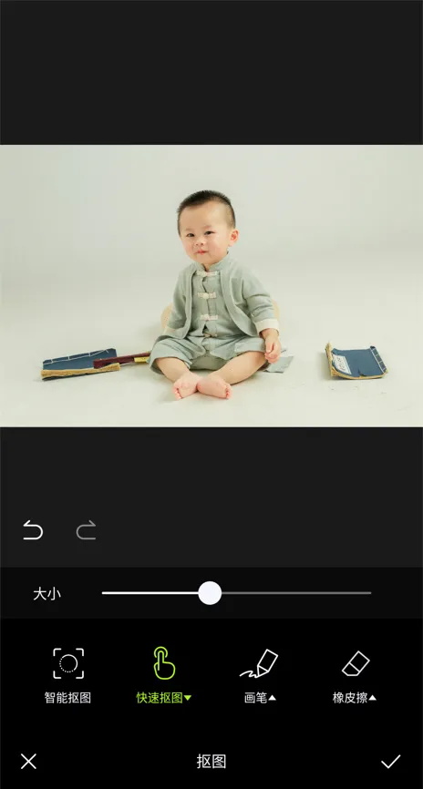步骤 3:执行上述操作后,进入“抠图”界面,点击“智能抠图”按钮,如图所示。