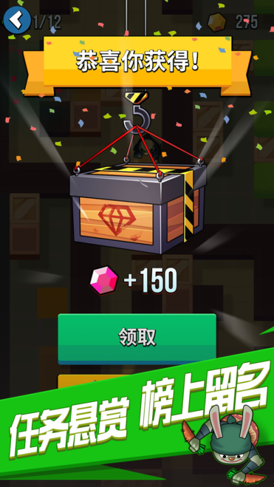 《全民刺客》是一款冒险闯关游戏,玩家在游戏中将成为一名刺客,你将要接取任务,去暗杀一个个的敌人,从敌人的手中夺得钻石,交给委托人,获得大量的奖励。