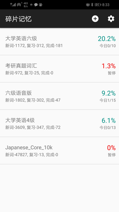 导入Anki库,设置好每日卡片数,碎片记忆会自动安排记忆时间,在适当的时候弹出学习卡片,直到牢记为止。