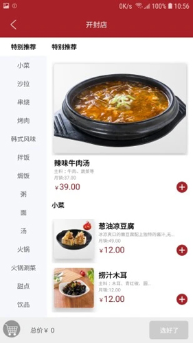 线上订餐,浏览餐厅各类菜品,快速选择喜欢的菜进行下单;