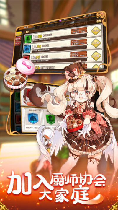 1、一款二次元日漫风格的料理厨娘收集类休闲游戏;