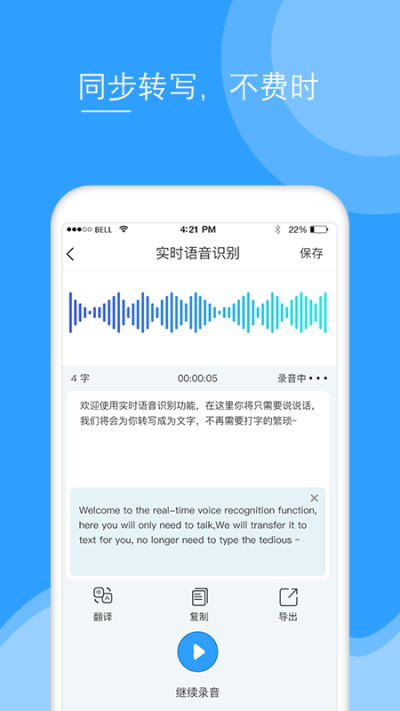 录音文字转换是一款支持实时录音转换为文字和导出复制功能实用性工具软件,准确迅速,操作简单!不但具备录音功能,音质流畅清晰,还可进行图片(OCR)转换文字,软件强大功能全面,满足生活日常与工作带来的便捷,图片文字提取,语音转文字,文字转语音,语音听写记,等各种需求。
