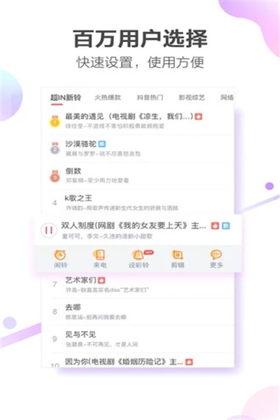 300W+高清音质铃声,覆盖QQ音乐、网易云音乐、酷狗音乐等曲库