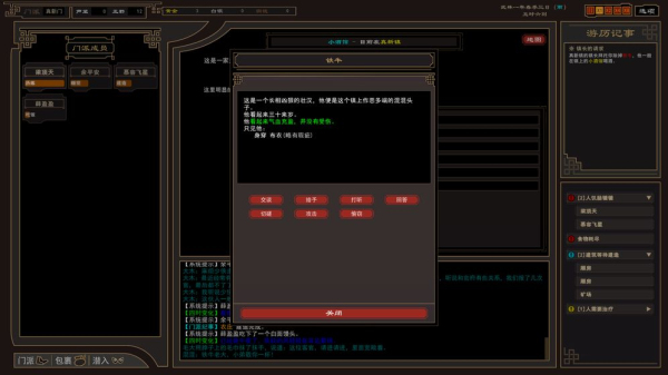 与不同的江湖角色进行交互,你可以向别人打听隐秘的江湖消息,也可以击杀看不顺眼的角色,随意窃取他人身上的财物,但是务必小心官府!