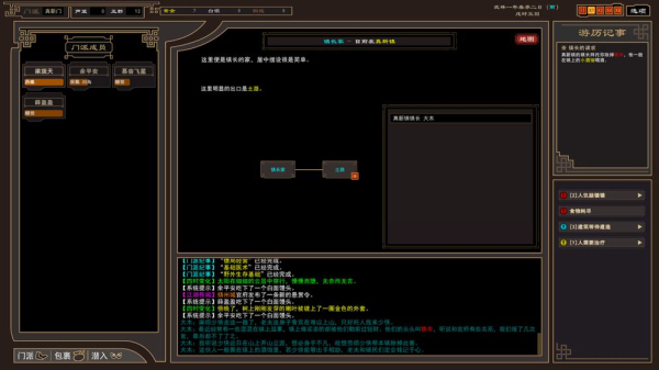 游戏的游历玩法以MUD类游戏为基础,构建一个开放的江湖。你可以摆脱主线剧情的限制,带领弟子在地图中自由探索。