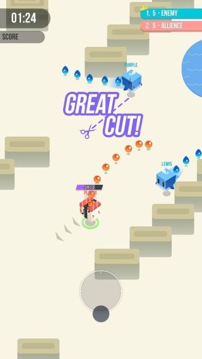 切尾巴是一款以Q版卡通画风、方块角色形象为特色的休闲竞技大作战类游戏。游戏中玩家选取代表自己的动物形象进入即时对战的战地,努力收集地图上散落的方块,在不被切断尾巴的前提下将方块运回自己的主基地中。