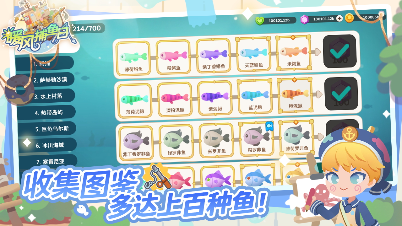 - 收集图鉴,打造水族馆
