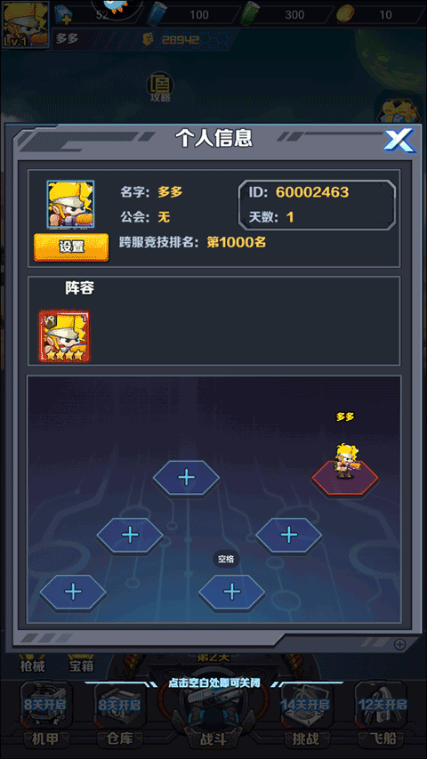 5、然后点击人物头像后可以子啊这里获取人物信息,而点击阵容,则可以进入阵容界面;