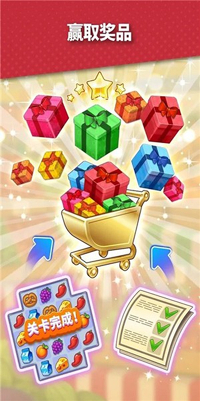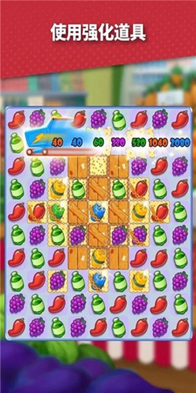 疯狂超市是一款休闲益智类手机游戏,游戏讲述了主人公回到她的故乡小镇,希望用自己的力量让故乡更加繁荣。玩家需要通过消除来获得更多的分数,用分数来兑换城市发展需要的东西,快来帮助主人公吧