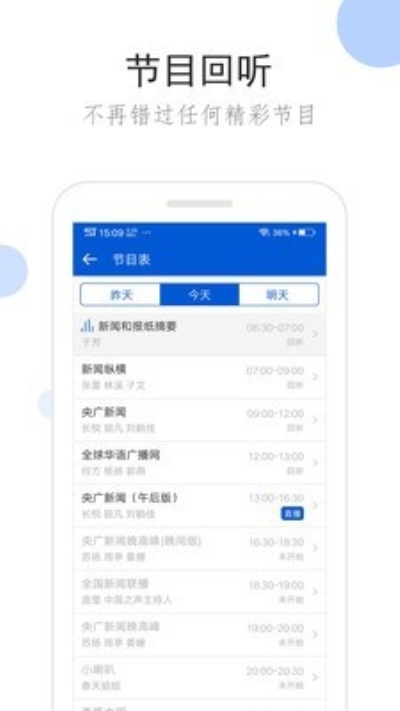 8.支持广播回听功能,让你不错过任何精彩节目。