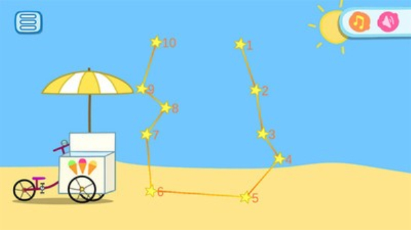 1 - 连接点显示屏显示的卡通粉红猪小妹的英雄之一,然后消失,一个孩子需要削减图像周围,连接所有的星星。当任务完成 - 将是一个全新的形象。你的宝宝会很乐意跟踪的画面,你最喜欢的卡通人物佩奇。