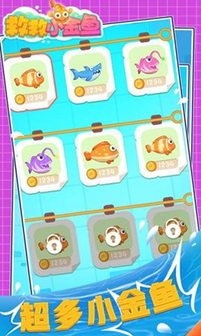 救救小金鱼手游是一款帮助小金鱼逃生的益智游戏应用,救救小金鱼游戏画风非常q萌,拥有超多有趣的关卡设定,玩家需要想办法通过闯关,救救小金鱼休闲好玩。
