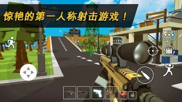 以第一人称视角上线一场像素风人物的大逃杀对决。将真实的武器融入到地图中,各种炫酷的皮肤和喜欢的枪支正在等着你的到来。完全公平的百人竞技将在这座岛屿中展开。