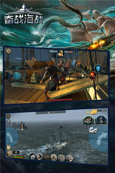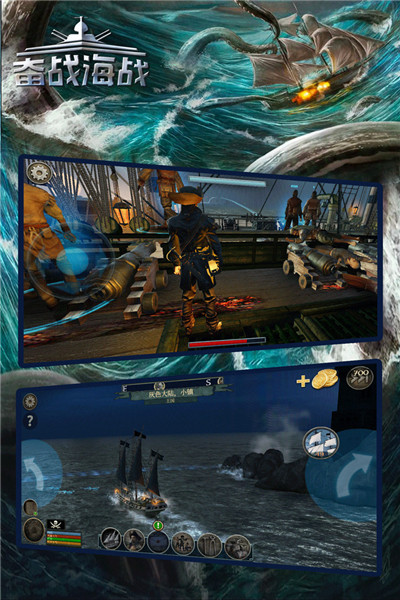 《奋战海战》一款海上冒险游戏,游戏中玩家将变身海盗,自定义自己的船只,与敌人作战,并发现游戏世界中的第一块区域。最让人激动人心的部分就是海战,当你经过危险的海域时,你会遇到其他的海盗,并且这还不是最可怕的。最可怕的是深海中还存在着凶恶的神话怪物:北海巨妖、利维坦和其他其他臭名昭著的生物,你要在大海上与他们进行博弈,只有胜利的一方,才能是这片大海的主人。