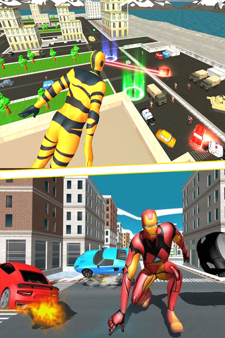 游戏中,你是超能飞行队的一名超级英雄,犹如钢铁侠超人蜘蛛侠一样,公民需要你。你将营救平民免遭危险, 打击黑帮和黑手党。帮助拥挤城市的警察维持城市的安宁, 击败歹徒。使用你的激光眼射击敌人, 并告诉他们邪不胜正;使用你的飞行技能更快地到达的地方, 及时拯救人民伙伴们,保护他们,成为他们的奇迹, 冲向敌人, 并及时把他们逮捕, 维护世界和平。记住不要伤害平民,所以, 要坚强, 追捕罪犯, 救人!