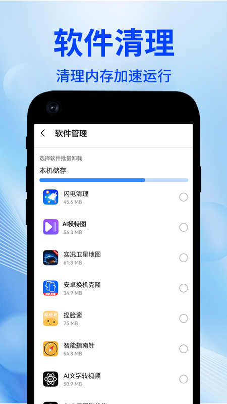 2.可以帮你清理手机本地的文件、图片,用户可以有选择性的进行清理;