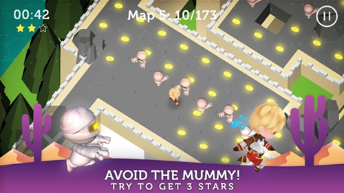 宝藏迷宫逃离是一款十分有趣的休闲轻解谜小游戏,游戏拥有十分简约清爽的画面和各种有趣富有创意的场景,搭配轻柔的色调,在游戏中即可体验到最休惬意的游戏氛围,在游戏中你将作为一名探索者,深入这个巨大的迷宫中去寻求宝藏,但是你要巧妙的避开路径上遇到的各种木乃伊,尽情发挥你的想象,想方设法的甩开它们不断闯关吧!