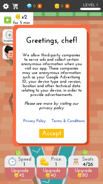 打开和管理您的咖啡馆,并建立有史以来最好的餐厅帝国!您可以购买新物品-桌子和椅子,开放式装饰品-绘画,鲜花等。选择最好和最有吸引力的物品,以吸引更多的客户并赚更多的钱!