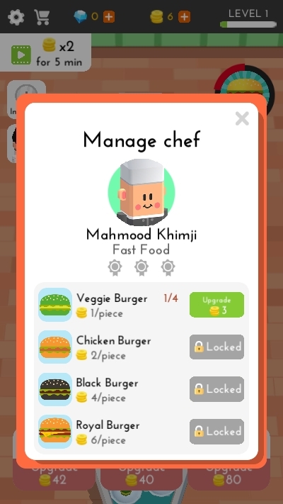 2、您想拥有最好的咖啡馆和最大的餐厅帝国吗?打开新角色并升级它们。厨师们为每种口味烹制美食!他们帮助您养活所有客人!尝试发展您的业务并致富。