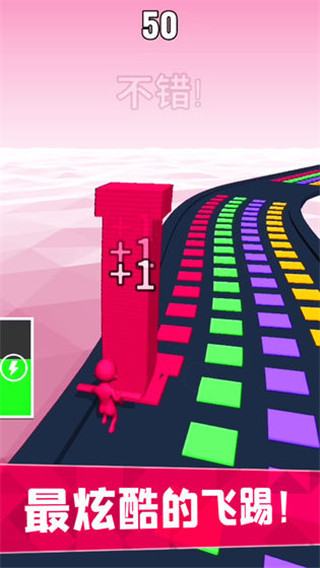 《搬砖我最强》是一款休闲益智类的趣味跑酷游戏。在游戏中,玩家需要去尽可能多的收集众多的砖块,需要注意的是砖块的颜色有着多种,小人的颜色也是变换的,只能去收集与小人颜色一样的砖块,如果碰到其他颜色的方块会消减已收集到的方块的数量。