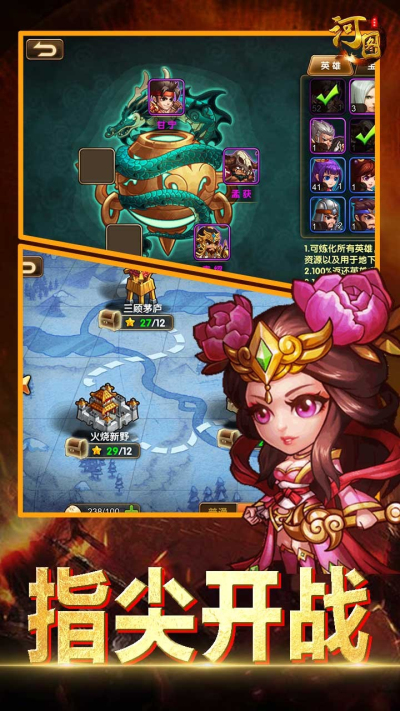 在这款游戏里玩家们对于各种敌人的战斗是回合制的战斗;各种神将有自己强大的技能,在于敌人战斗的时候能够发挥巨大作用。