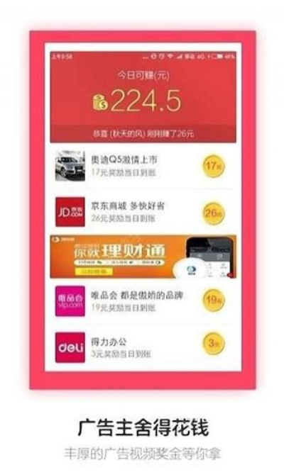 1、广告主舍得花钱:丰厚的广告视频奖金等你拿。