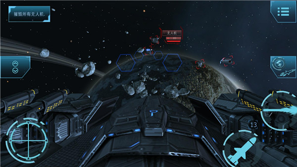 2、在移动设备触摸屏上播放或使用与Google Cardboard兼容的护目镜在VR中体验太空战;