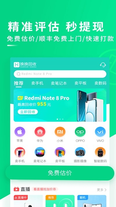 高价回收闲置二手手机电脑,就上换换回收!旧机高价回收,再享890元加价大礼包,放心卖秒到账!业务覆盖手机回收、平板回收、笔记本回收及各种数码电子产品回收。行业回收报价,顺丰2h上门取件,全程可视化检测,安全数据隐私清除,为您提供专属优质回收服务!
