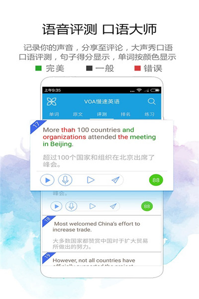 《VOA慢速英语》是美国之音官方授权合作伙伴APP!专业语音评测,中英双语,每日更新,VOA正版内容! 等公交、坐地铁时你还在傻傻发呆吗?你还在左右滑动手机无所事事吗?还不快来学英语! VOA慢速英语是专为非英语国家的学习者量身定制的学习栏目!听懂VOA再也不难啦,细细品味纯正英语,让大家在轻松的氛围里轻松的学好英语,全面提升听力、阅读能力、词汇量。