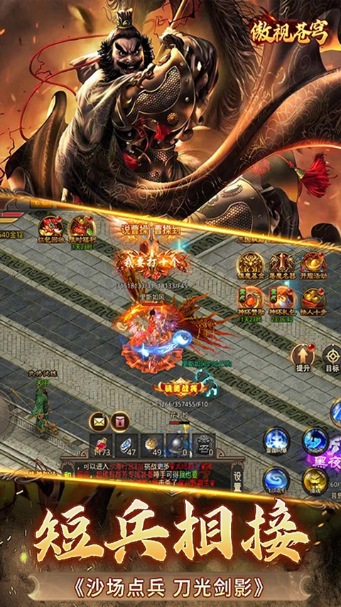 超激情打宝体验,极品装备、高级技能打怪爆,自由交易随心所欲。 军营、红包……多元化社交玩法,你不是一个人在战斗!