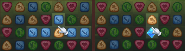 将4个符文连成一条直线,或5个符文组合成L/T型消除,会发动1次技能1,同时也会生成1个技能符文。消除技能符文后,对应的英雄则会触发技能2。