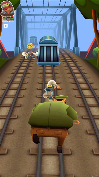 1、划屏控制方向。和所有跑酷游戏类似,玩家左右划屏控制游戏角色左右移动,上划跳跃,下划蹲曲,比较有意思的是主角在空中的时候也可以左右控制方向。