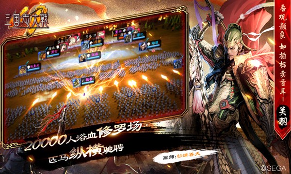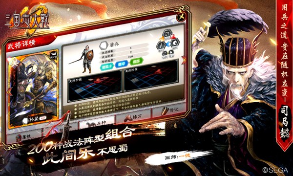 《三国志大战》手游是由日本SEGA正版授权,多酷游戏代理发行的正版日系三国卡牌手游。作为SEGA经典“三国志大战”系列的手游作品,游戏延续了街机版经典的兵略、计略、战略玩法与系统,并采用全新3D游戏引擎,在移动端上为玩家呈现出“万人级别”的宏大战争表现。狮子猿、陆原一树、一德等日本插画、漫画师参与设计制作的百余位三国名将们,将在游戏中随玩家们一同征战乱世。这是属于英雄的时代,而你将是这个时代的英雄!
