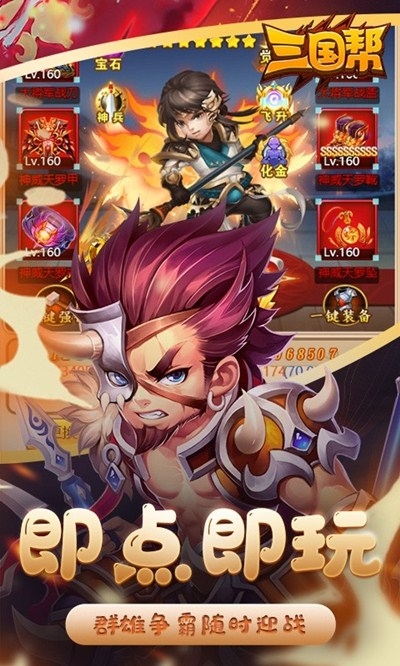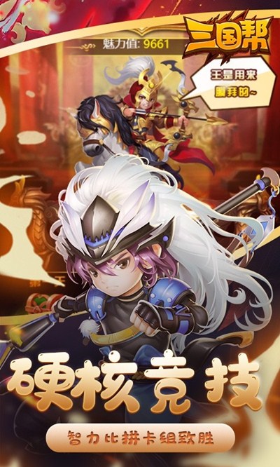 《三国帮》以三国为时代背景,打造Q版萌新的青少年英雄武将,让玩家化身青年主公,通过塔防、策略、养成的丰富玩法模式,勇闯征战副本、群P竞技场、攀登名将塔、逐鹿宝藏、一统天下,还有超级大BOSS等你挑战,不要犹豫了,主公,我们出战吧!