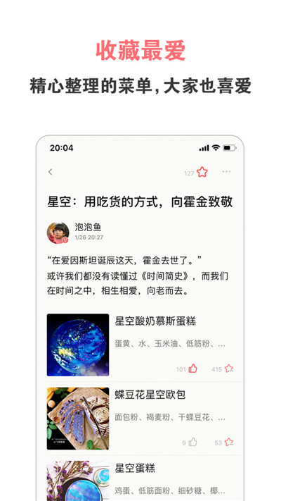 《美食天下》是一款专注美食的吃货社区,汇聚海量菜谱的常备工具,令厨房与餐桌成为一家人妙不可言的愉悦生活。 在这里最活跃的美食杰出作者与热爱生活的美食家们,通过锅碗瓢盆、菜豆果蔬,为您呈现图文并茂、无比详细的菜谱,以及挥洒自如、满座惊艳的创意美食。