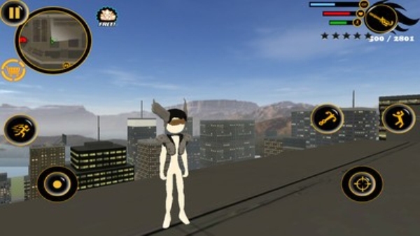 3、操控火柴人在城市的每个建筑物之间进行跳跃和前进,面对敌人勇敢拿出武器射击战斗。