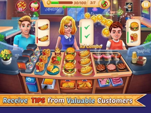 欢迎来到厨房站厨师:免费的烹饪大亨餐厅,这是一个厨师烹饪游戏,您可以通过提供快速的服务来讨价还价,在疯狂的咖啡馆游戏中以最美味的食物取悦饥饿的顾客,从而扮演疯狂的烹饪餐厅厨师的角色。厨房站厨师:免费餐厅大亨是上瘾的时间管理疯狂厨师烹饪游戏。加入疯狂烹饪的咖啡馆发烧,在不同的餐厅厨房里做疯狂的厨师来烹饪可口的饭菜和甜点!作为真正的发烧厨师,自己环游世界,并在厨房游戏中担任大厨,在厨房里烹饪可口的食物和甜点。