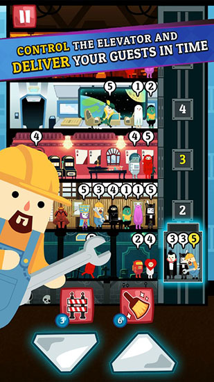 你扮演一个酒店的老板,每天来你的酒店的客人都需要做你酒店的电梯,你需要管理好你的电梯来服务那些具有超能力的客人,用好的服务来赚取更多的金币。