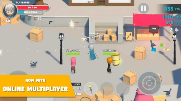 《Pigeons Attack》是一款精致卡通风格的全新俯视角射击类手游,这款游戏融合了角色扮演元素与滑稽的剧情,玩家需要在成群鸽子的进攻下存活下来,并探寻鸽子袭击人类的原因!