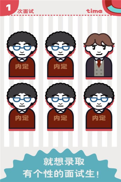 《面试官是怎样炼成的》是一款十分趣味的休闲游戏,游戏中玩家将扮演一家企业的面试官,企业非常需要有用的人才,在无数招聘者里,玩家需要找出其中最具有个性的人,并录取它们。面试官是怎样炼成的最新版的游戏玩法十分简单,游戏内将出现多个招聘者,玩家只需根据关卡的提示,来找出符合提示的招聘者即可通过关卡。