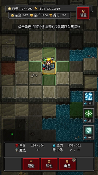 开局时候可以自己选择勇者类型,毕竟是沙盒游戏,进场后自由探索地图,攻击的话是需要点击范围内的怪,同时移动过程中可以挖矿开拓新地区,并且怪物也是随角色的移动而移动,有点像一二三木头人的感觉。