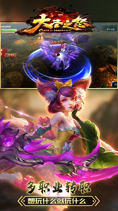 这是一款经典西游题材3D国战动作手游!酷炫十足的游戏背景音效让玩家身处奇幻绚丽的神话世界。加入了策略性的养成模式和组合脑力的挑战,会给你一场烧脑的挑战。让我们一起去感受西游的冒险,感受一场三界的冒险之旅。