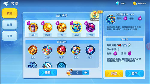 在技能道具页面中预先配置所需道具。