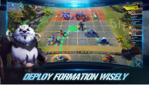每回合的棋子选择完毕后,就会随机与玩家或者AI 进行交战。战斗的时候玩家是无法进行控制的,因此决定你强弱的关键所在有三点:阵容、站位、棋子等级。